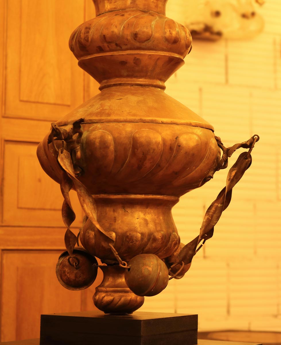 La lanterna è stata lavorata a fusione e presenta 3 angeli alati.