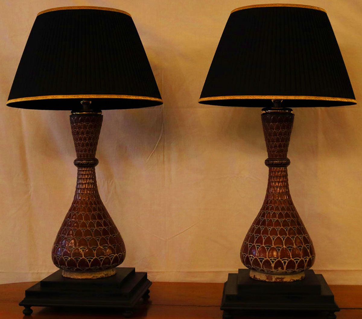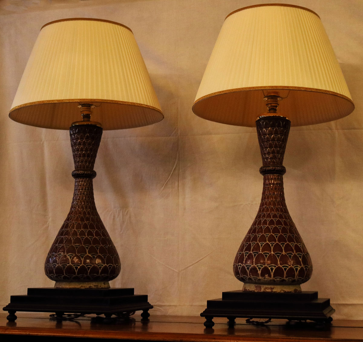 Coppia di vasi in ceramica Vietrese (costiera amalfitana) con decoro a forma di plettro della seconda metà dell’800.