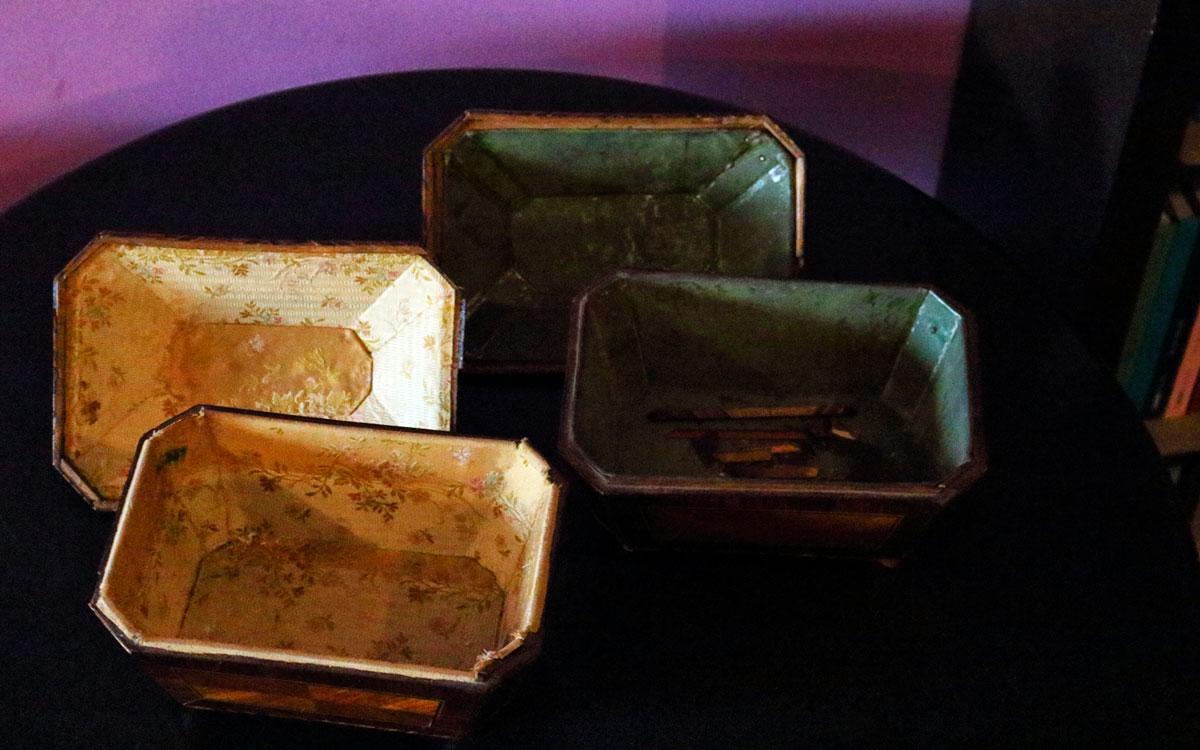 I due portagioielli hanno rivestimenti diversi all’interno: una è rivestita interamente da seta ricamata, mentre la seconda è rivestita in metallo.