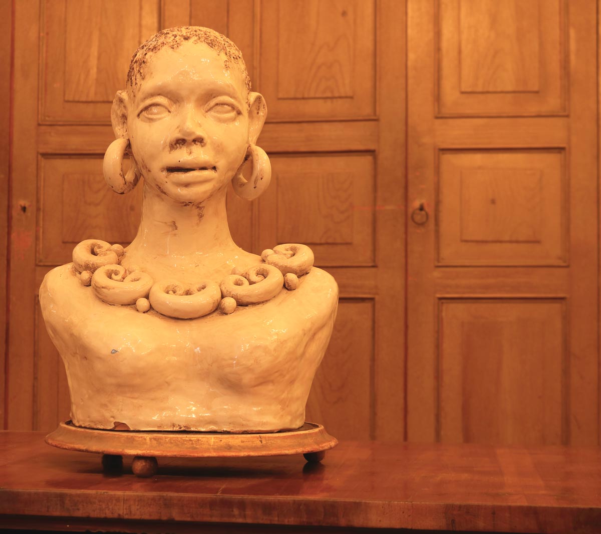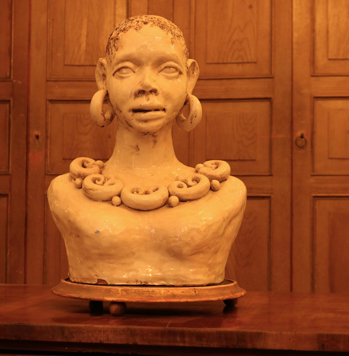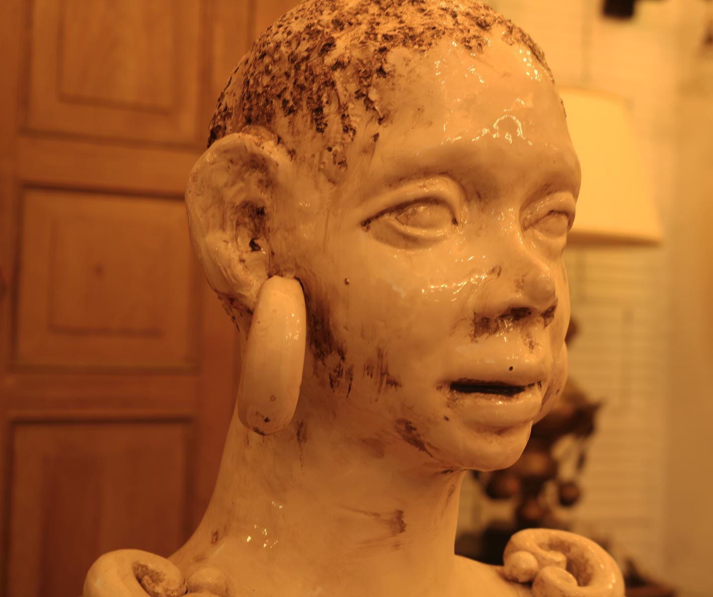 Mezzo busto di ceramica siciliana di donna africana XX secolo.