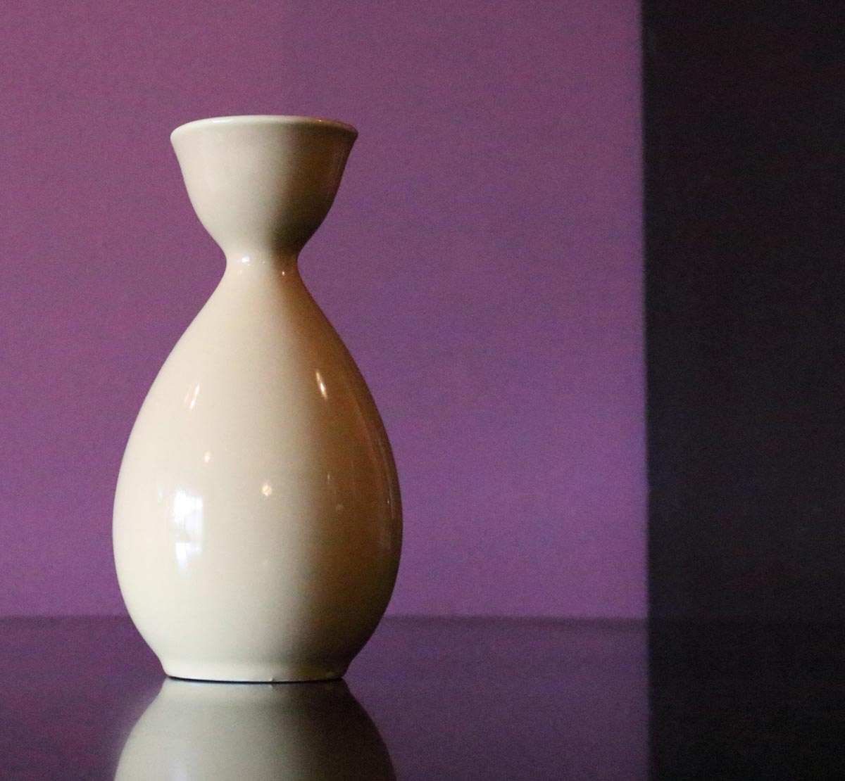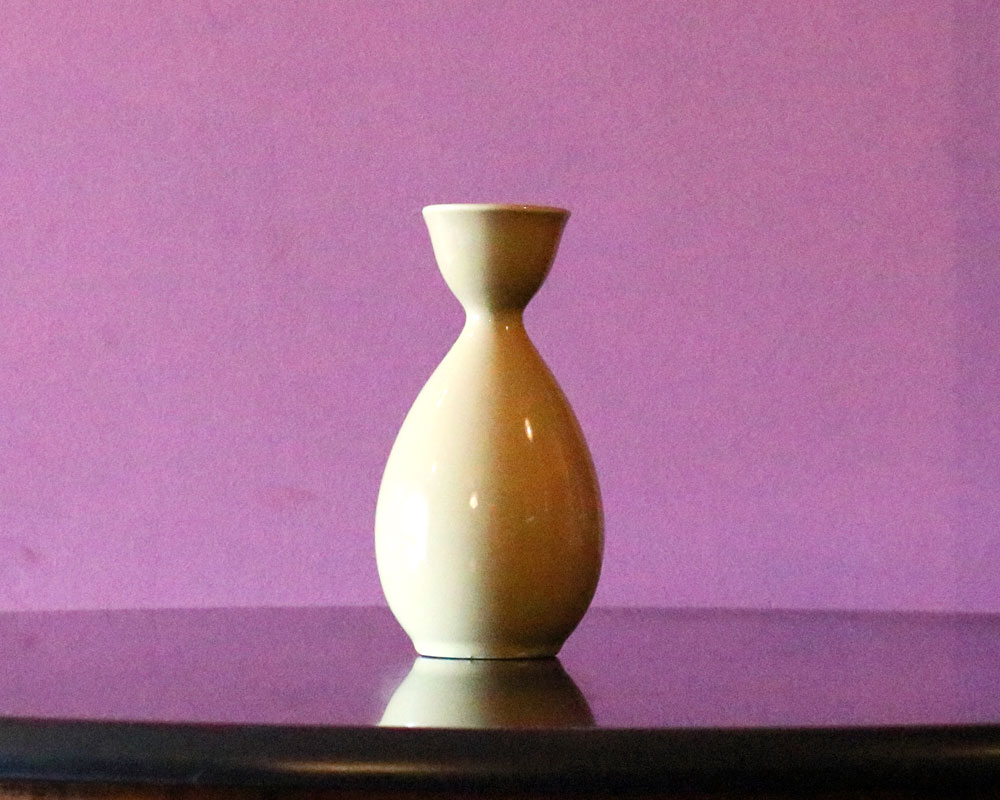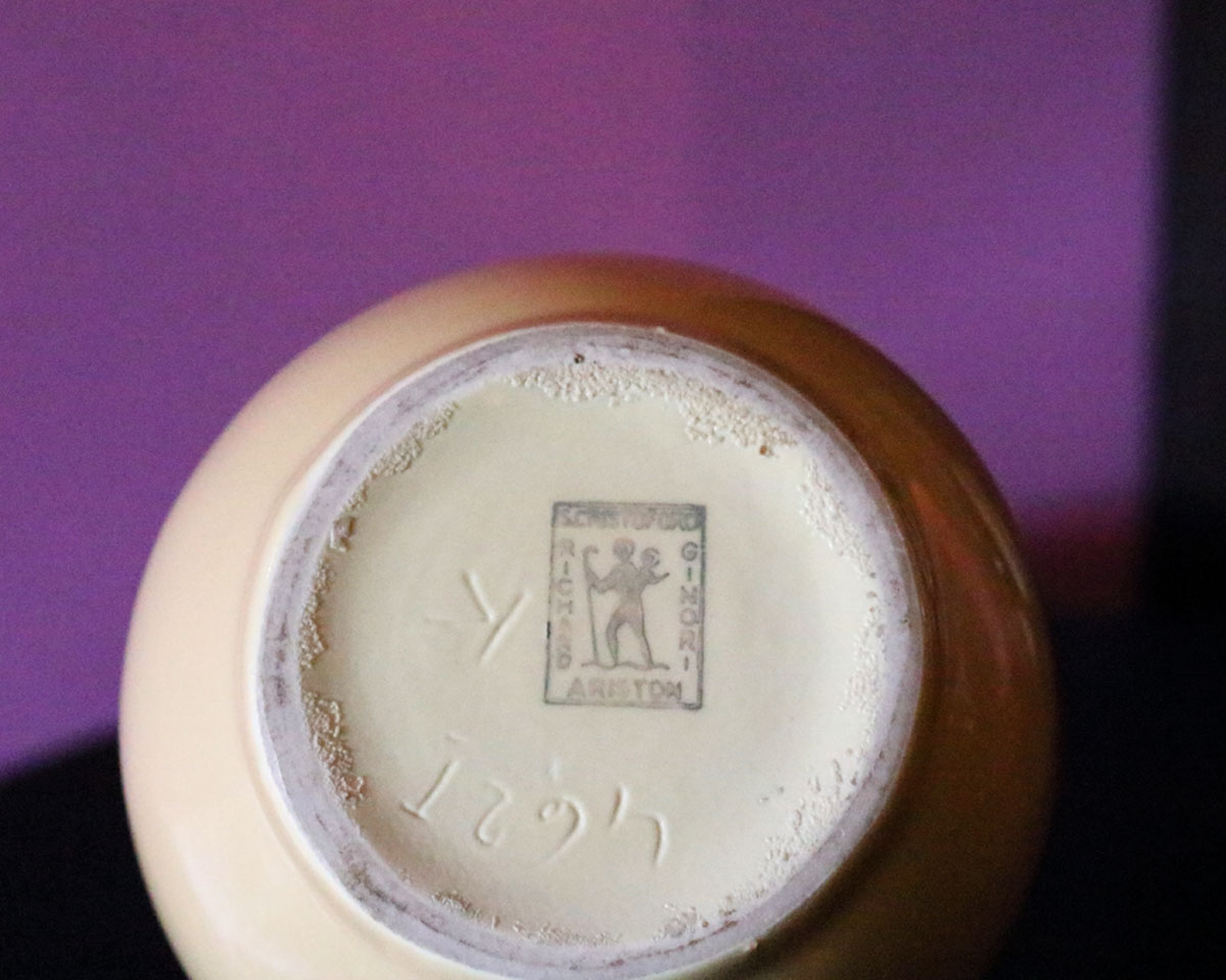 Piccolo Vaso color senape ad ampolla con collo stretto e parte centrale allargata firmato Richard Ginori – Giovanni Gariboldi.